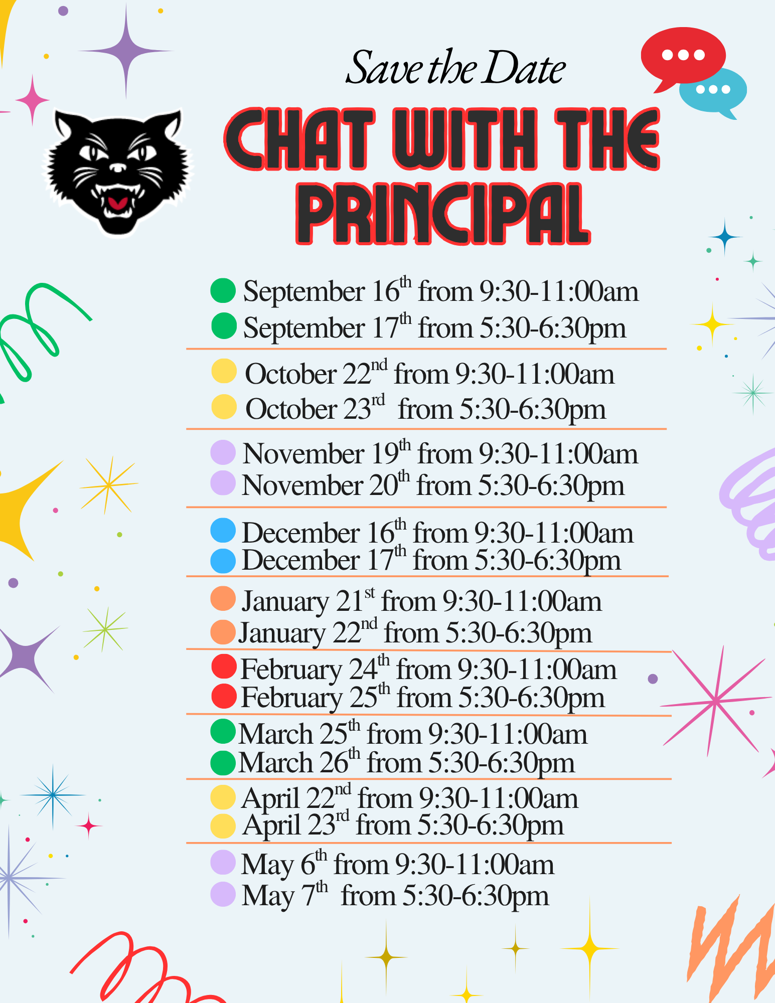 Join us monthly to hear important information about what's going on at EAHS, and to meet and talk with our principal, Ms. Jennifer Mitchell.Join us monthly to hear important information about what's going on at EAHS, and to meet and talk with our principal, Ms. Jennifer Mitchell.