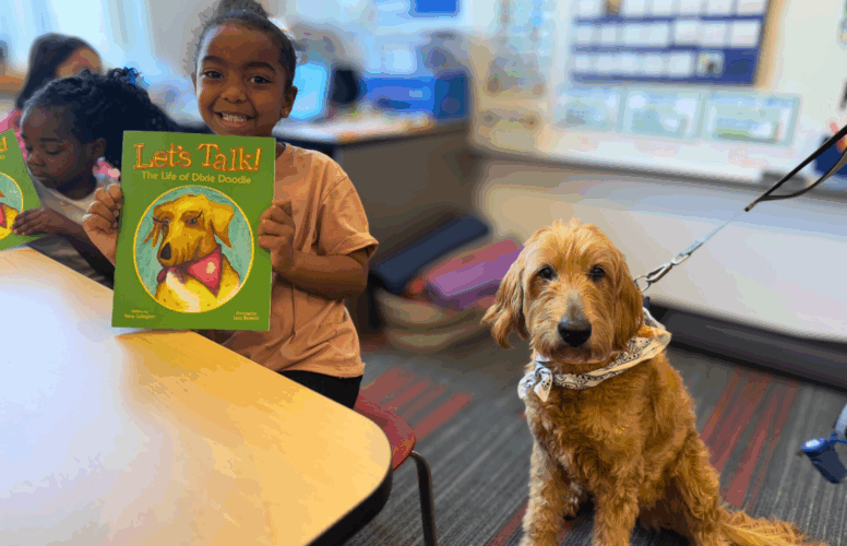 East Aurora School District 131 participates in a district-wide comfort dog program designed to support the emotional well-being of students across all our school buildings. As part of this initiative, students receive a copy of the book Dixie Doodle, which features a lovable comfort dog as the main character.
