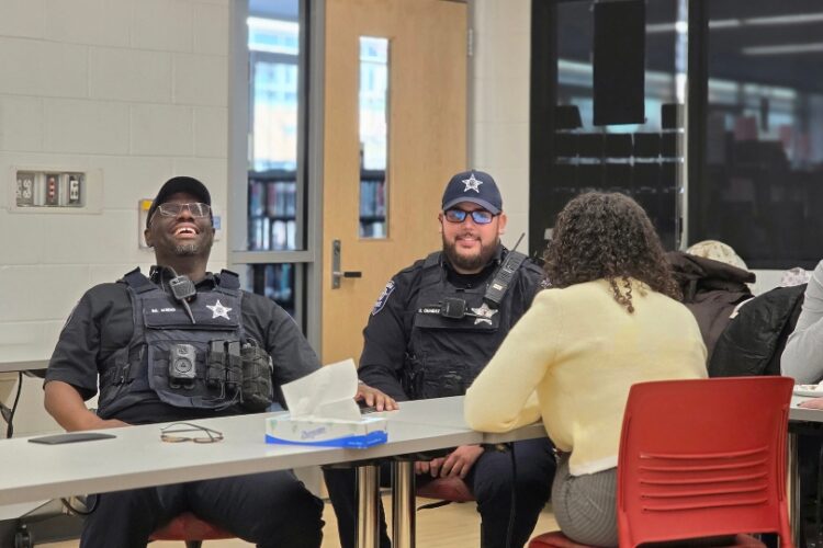 A lo largo del día, los estudiantes visitantes experimentaron de primera mano la vida en EAHS. Recorrieron los pasillos con los líderes de Snowball, participaron en presentaciones de EA Paws Pals y compartieron una comida multicultural mientras mantenían conversaciones significativas con miembros de la comunidad de East Aurora, incluyendo personal docente, administrativo y oficiales de seguridad escolar.